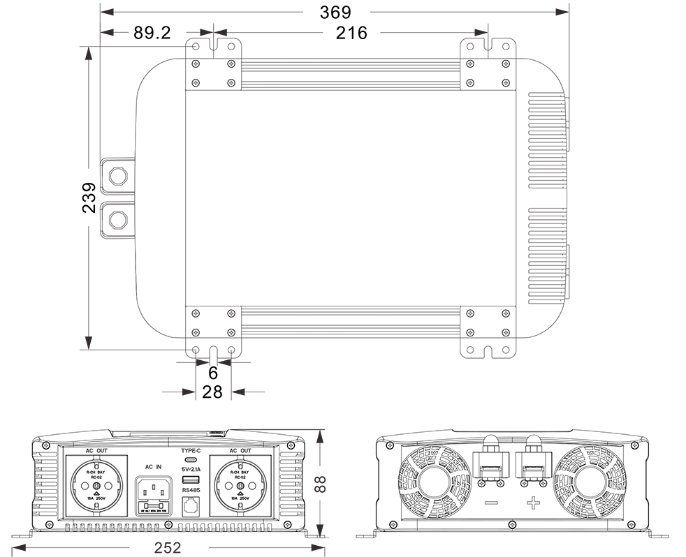 Άλλοι Διάσταση (Π×Υ×Β) 369×252×88 χιλιοστά