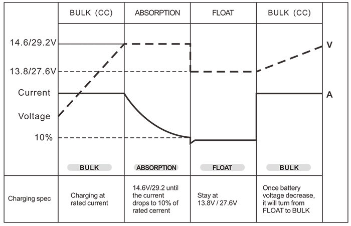 Έλεγχος μπαταρίας (Φορτιστές μπαταριών 3 σταδίων) Χύμα /Απορρόφηση /Float