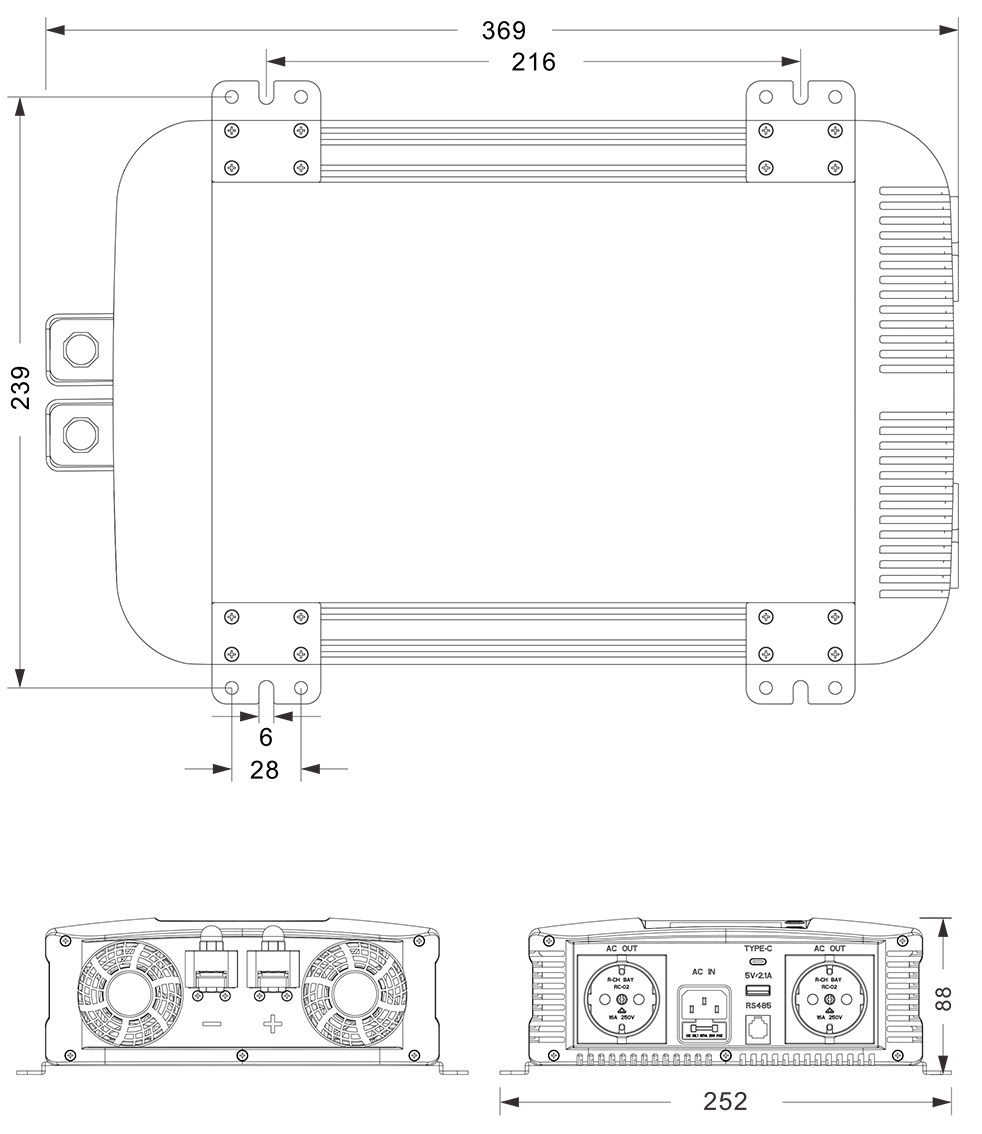 Μηχανικά σχέδια: (369x252x88 mm)