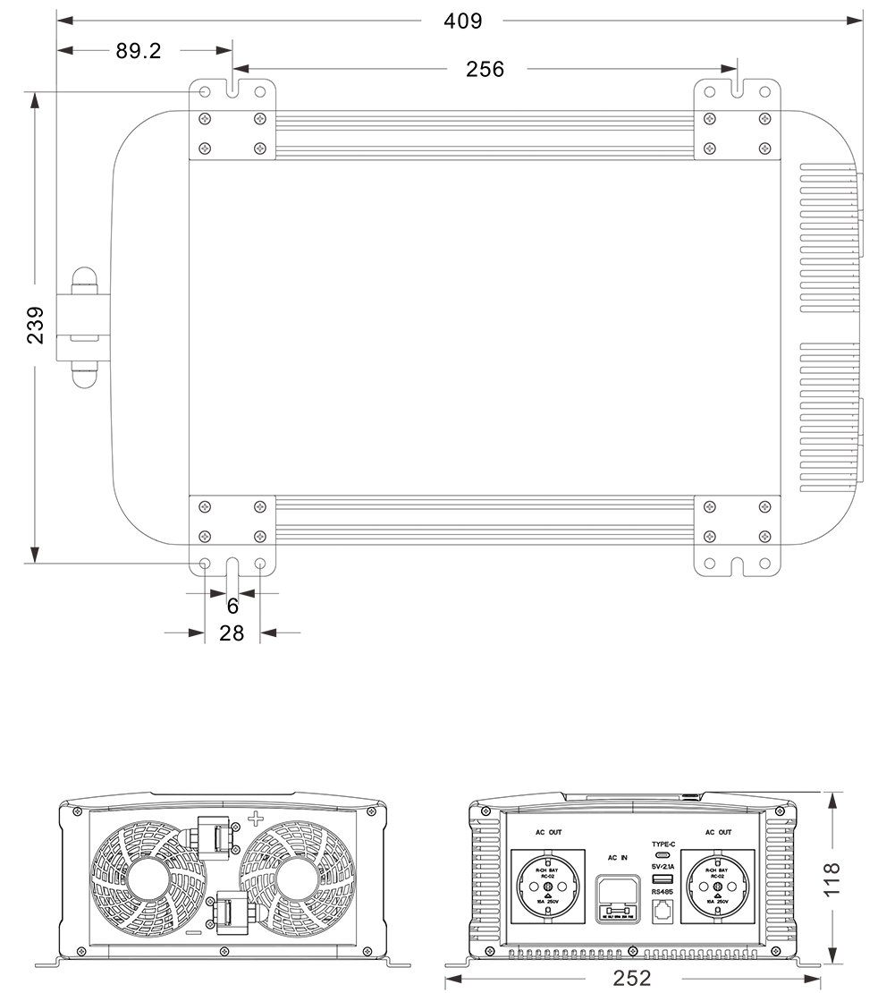 Μηχανικά σχέδια: (409x252x118 mm)